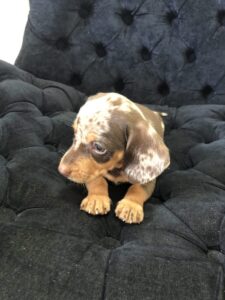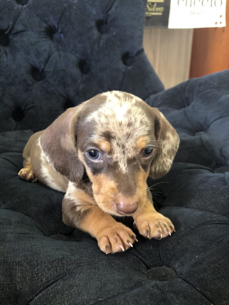 Filhote Dachshund arlequim chocolate fêmea basset, essa filhotinha deixou uma saudade quando chegou o dia de sua partida para seu novo lar. São filhotes doceis, carinhosos, ótimos companheiros para crianças e para adultos, um amiguinho para a vida inteira. Você vai se derreter com tanta fofura.